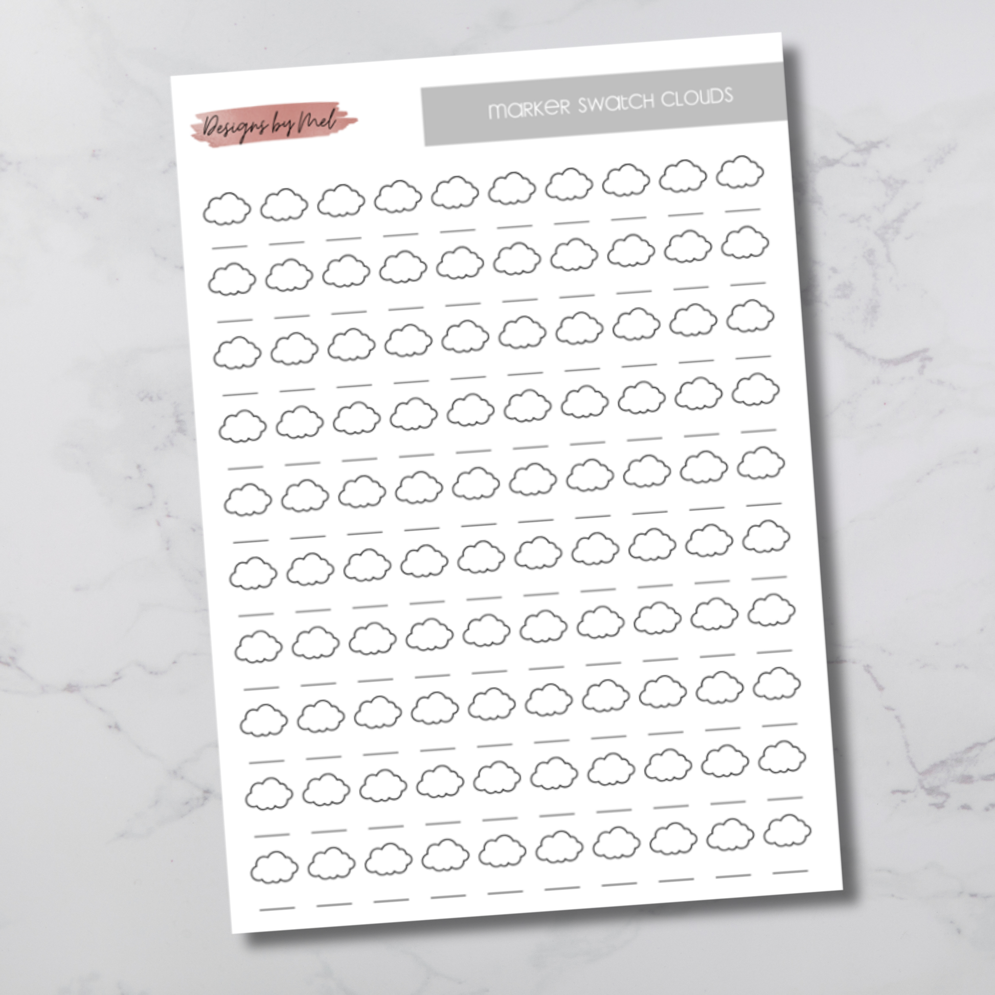 This listing is for a sheet of Marker Swatch Sheet - Clouds.