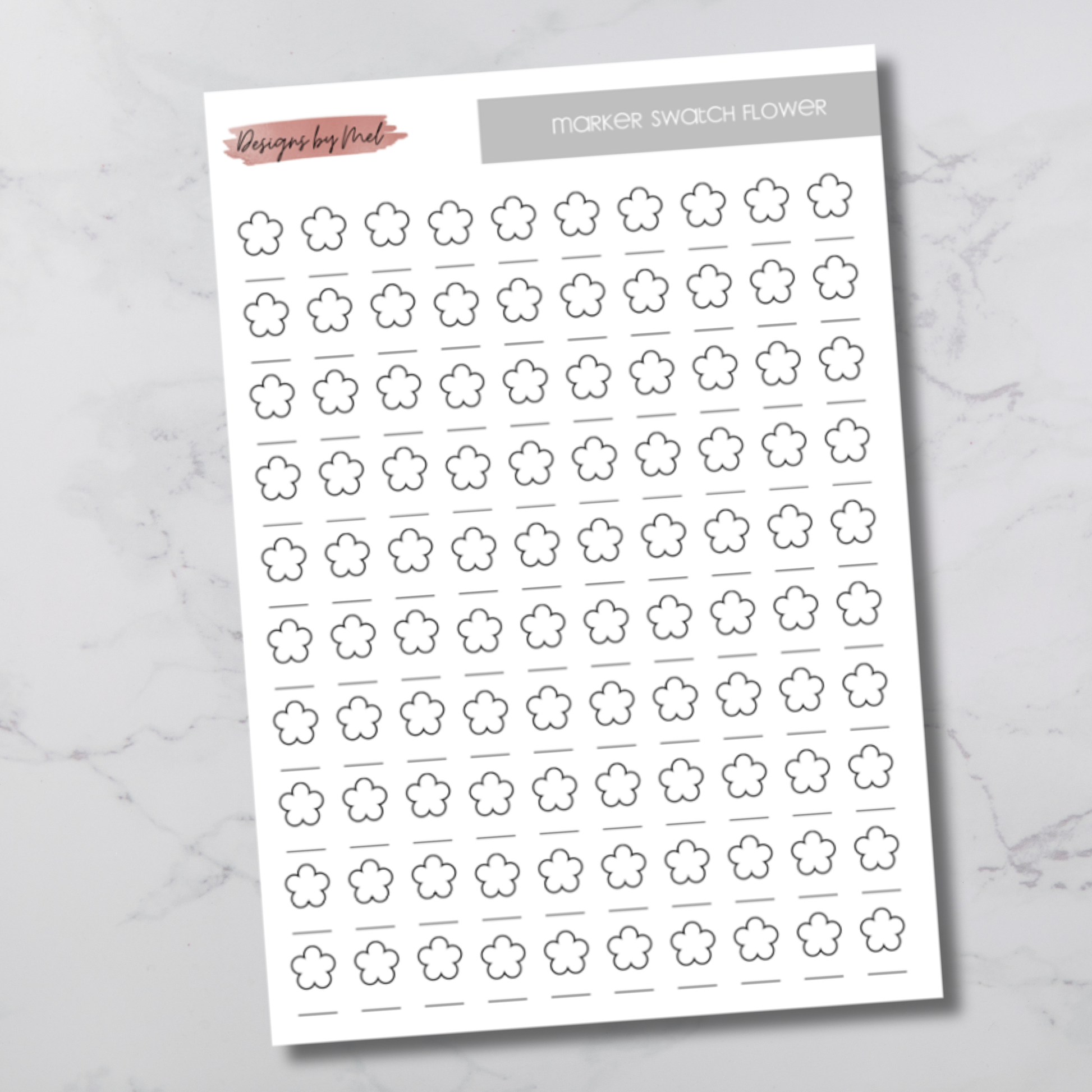 This listing is for a sheet of Marker Swatch Sheet - Flowers.