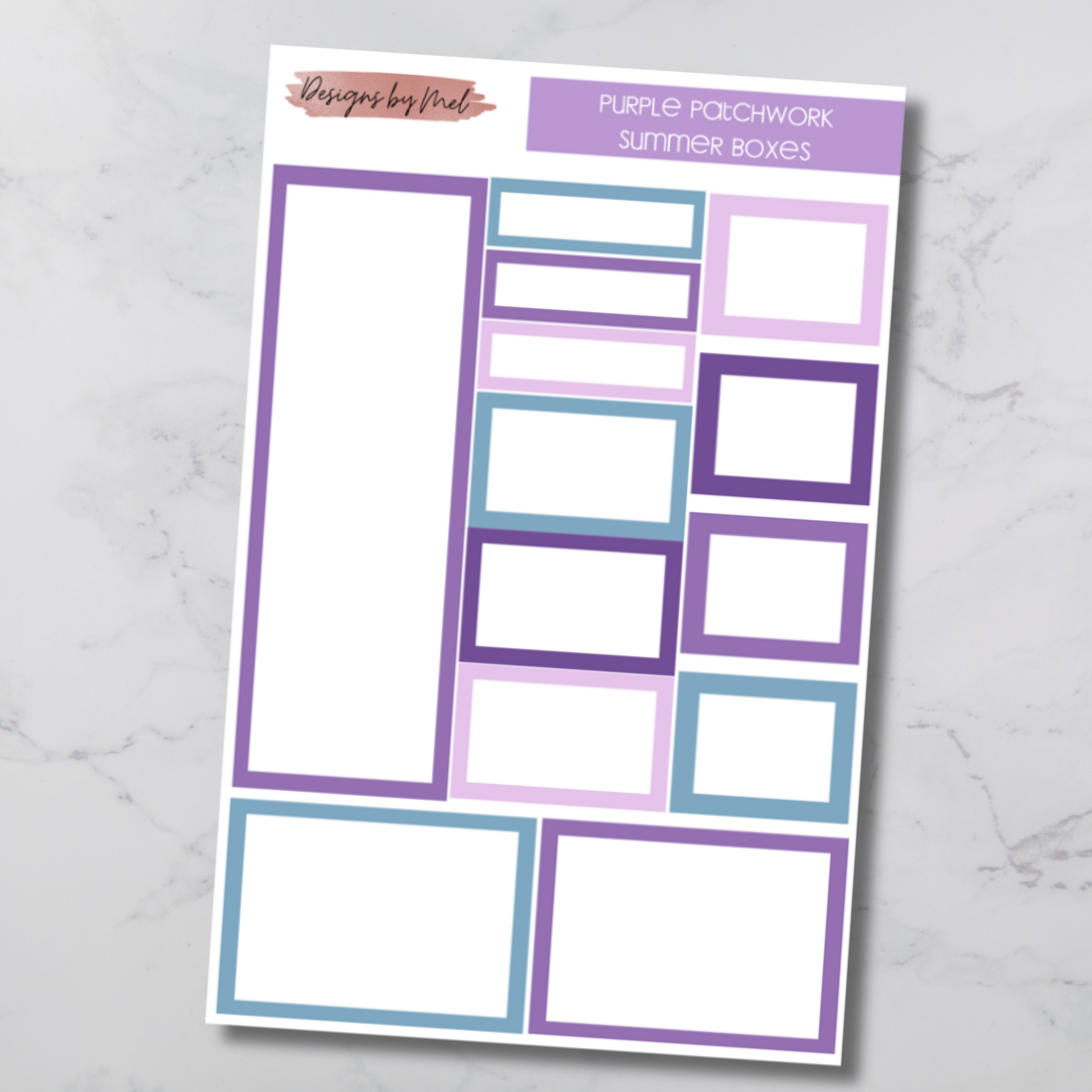 This listing is for a sheet of Purple Patchwork Functional Boxes that match the Purple Patchwork Deco. On this sheet, you will get a variety of functional boxes in coordinating solid colours.